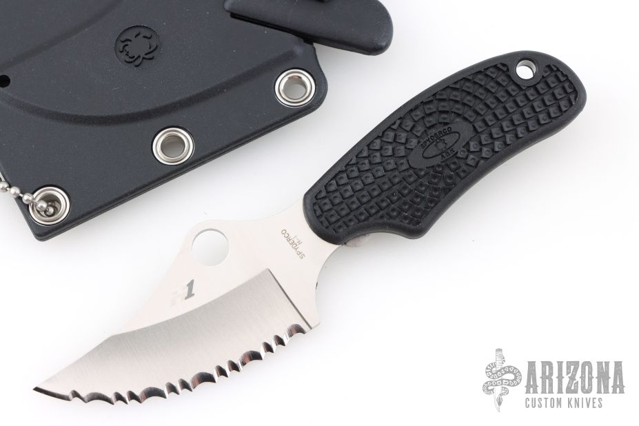The heart of the ARK is its deeply curved clip-point blade ground from H-1® steel—a nitrogen-based alloy that is extremely corrosion resistant. The curved edge packs impressive cutting power into the compact blade and the clip-point profile ensures a strong, extremely sharp point. The ARK’s fiberglass-reinforced-nylon (FRN) handle is molded directly onto the tang and features Spyderco’s proven Bi-Directional Texturing™ pattern and an index-finger groove to guarantee a secure grip—even with wet hands.
