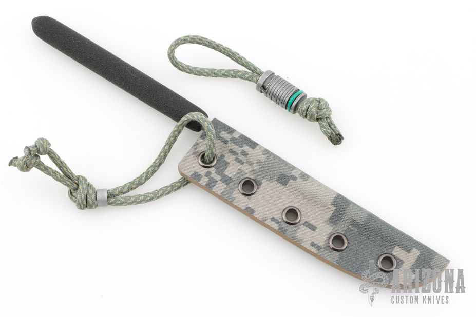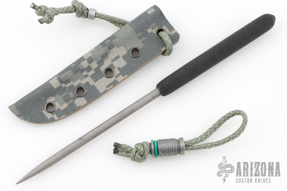 Large Icepick 4" foam grip, 6AL-4V titanium .25"x5" heat ano, Kydex sheath. (9" Overall)