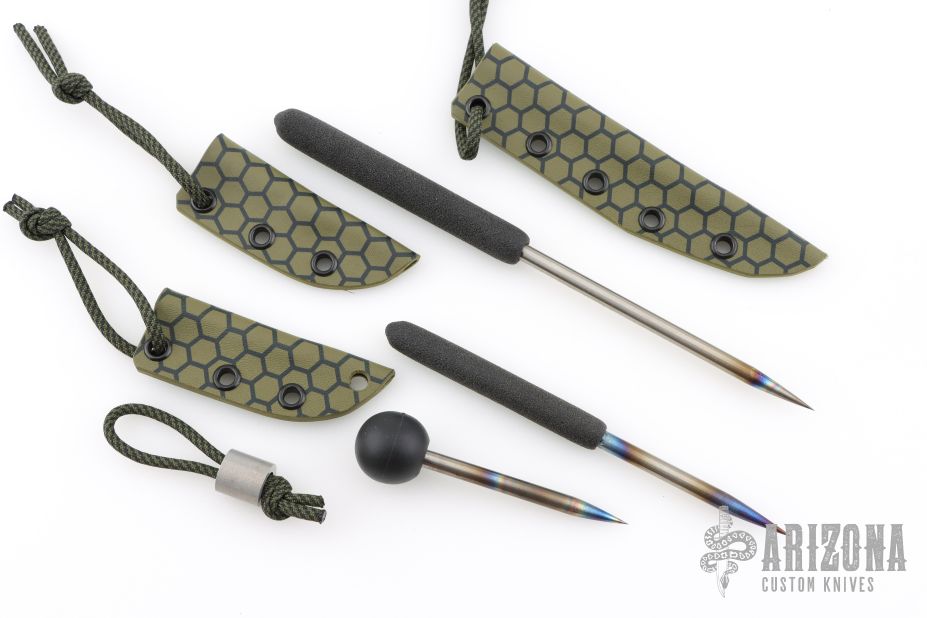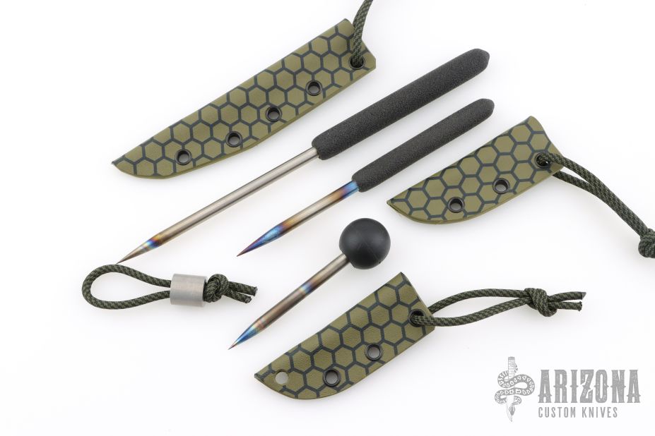 Small Icepick 3" foam handle 6AL-4V Titanium .25"x2.875", heat ano, g10 bead, kydex sheath. (6.25" Overall)