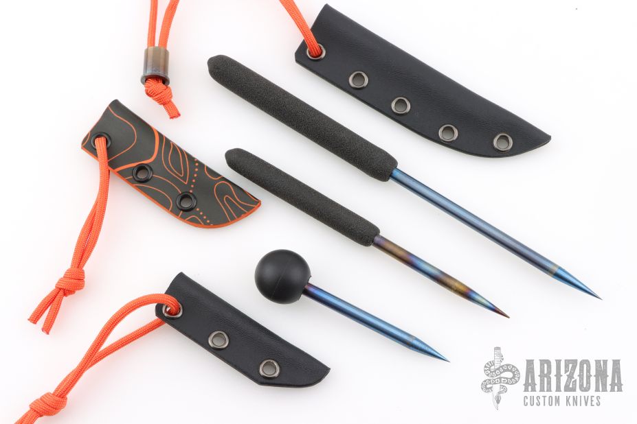 Small Icepick 3" foam handle 6AL-4V Titanium .25"x2.75", heat ano, kydex sheath. (6.25" Overall)