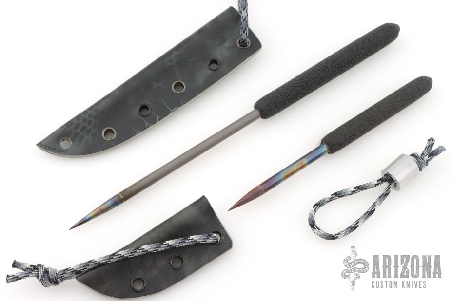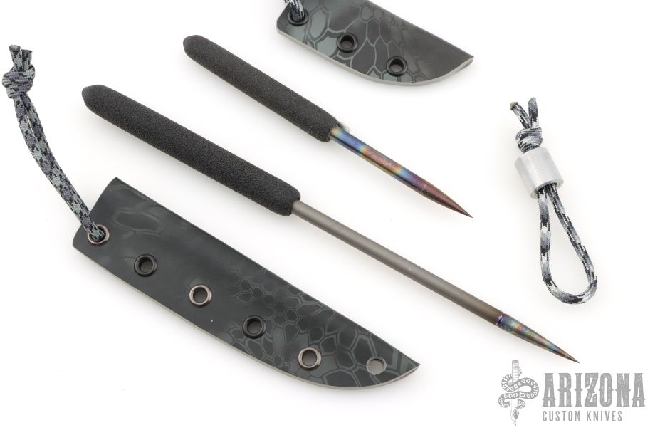 Large Icepick 4" foam grip, 6AL-4V titanium .25"x5.25" bead blast and heat ano tip, Kydex sheath. (9.625" Overall)