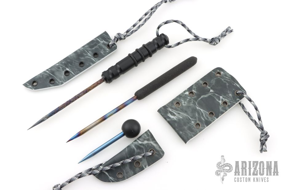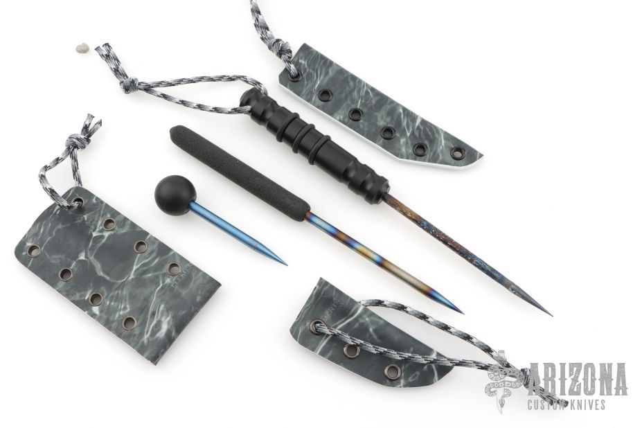 Large Icepick 4" foam grip 6AL-4V Titanium .25"x4.5", heat ano, kydex sheath. (8.75" Overall)