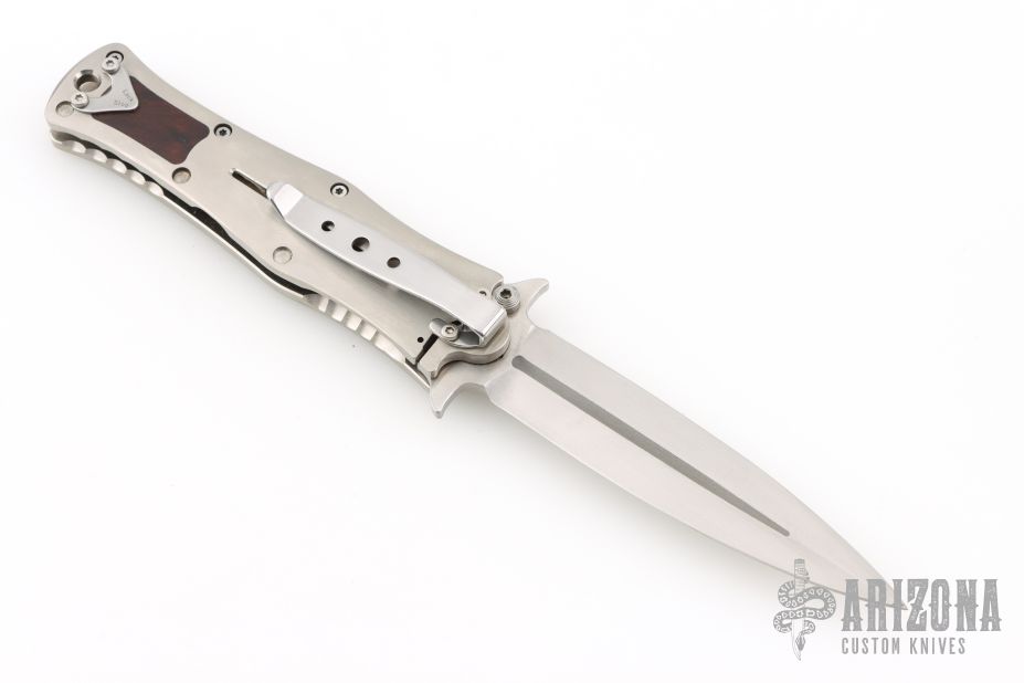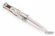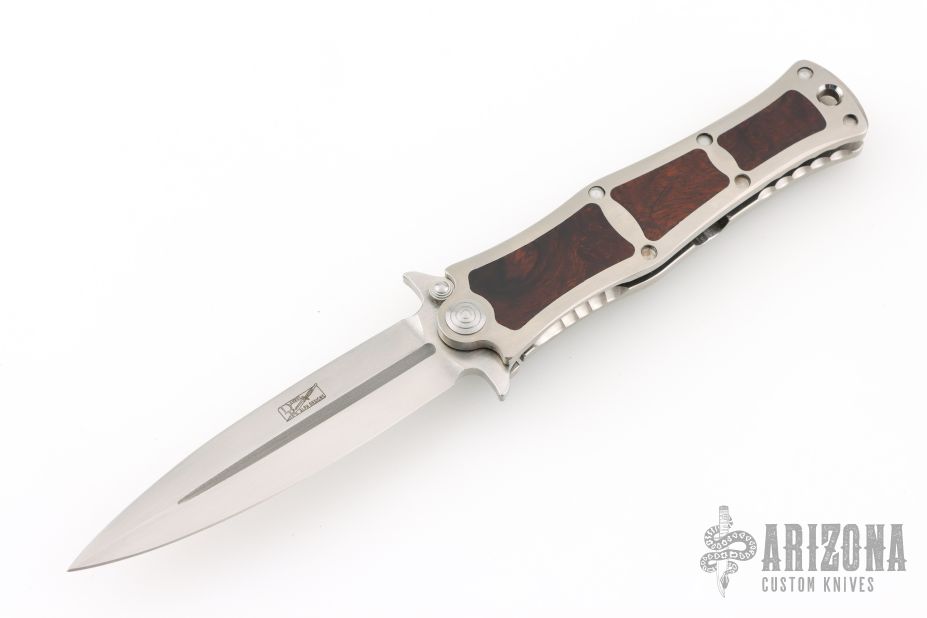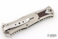 This Madd Maxx by Darrel Ralph features a hand rub satin finished blade with fullers, flipper and false top edge. The handle has a satin finished titanium frame with desert ironwood inlays, tip up or down reversible stainless steel clip. The edges of the handle are carved and contoured to allow for a superior grip. The powerful assisted opening system allows you to open the knife quickly and easily. Comes with original box, papers and a zipper case. Excellent condition.