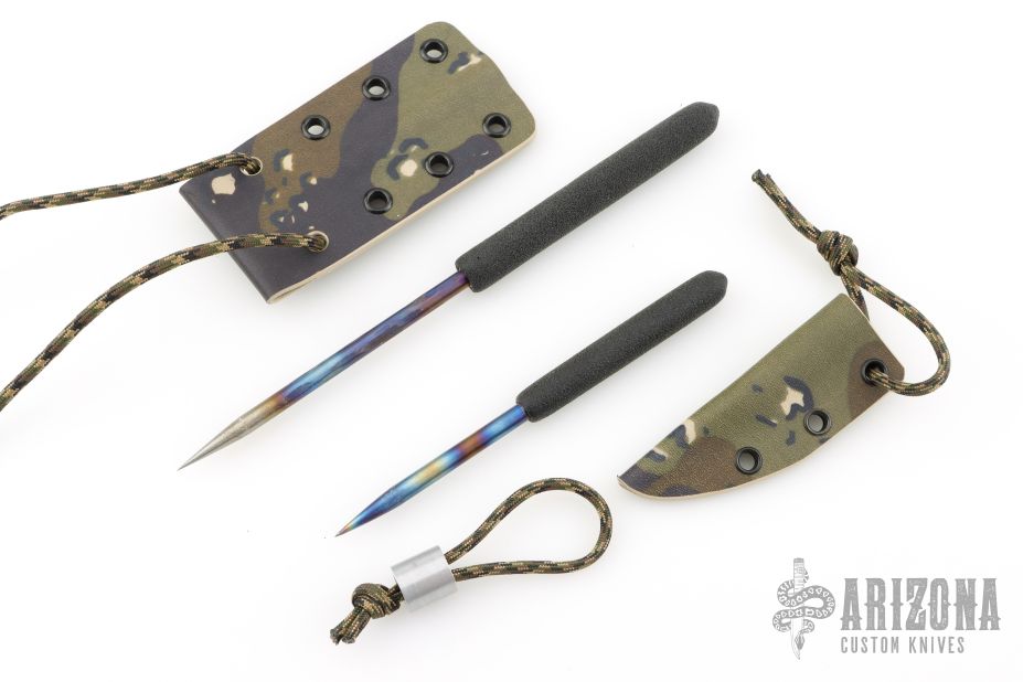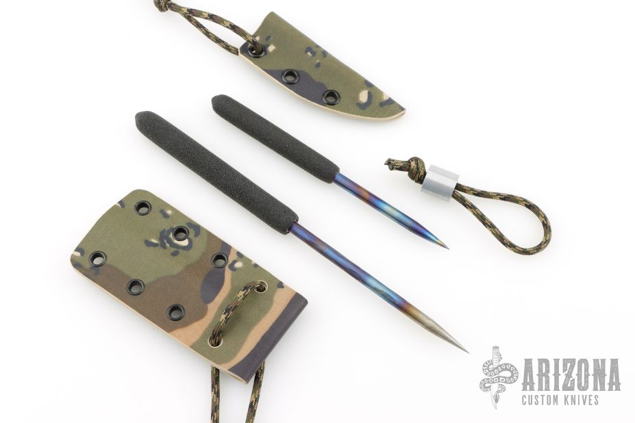 Small Icepick 3" foam handle 6AL-4V Titanium .25"x2.875", heat ano, kydex sheath. (6.125" Overall)