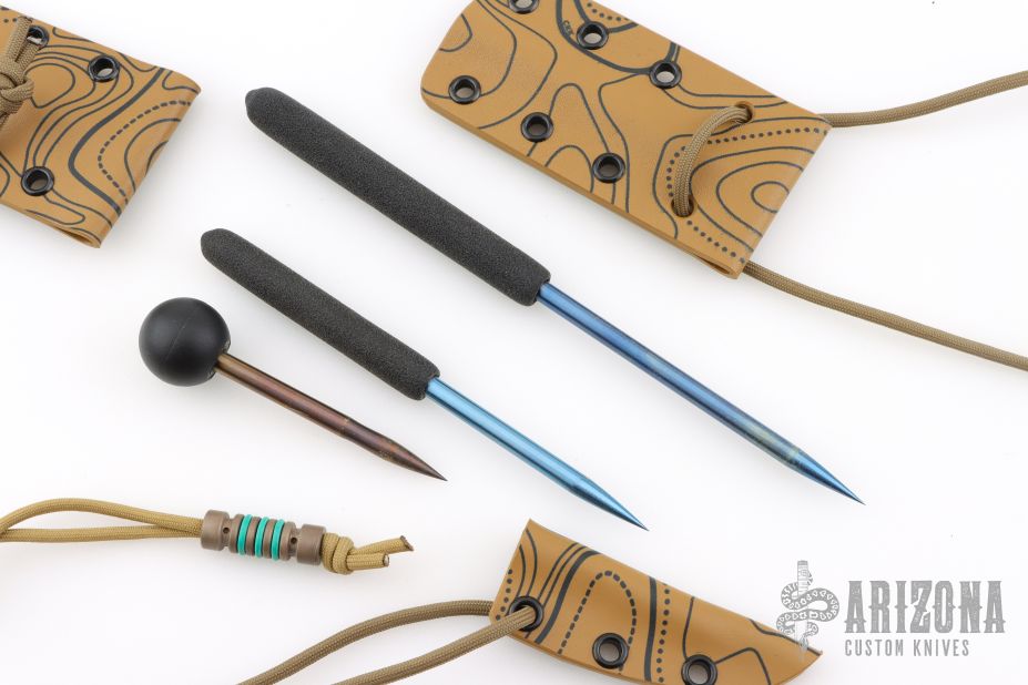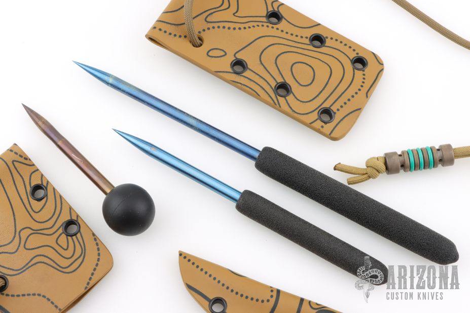 Small Icepick 3" foam handle 6AL-4V Titanium .25"x3", blue ano, kydex sheath. (6.25" Overall)