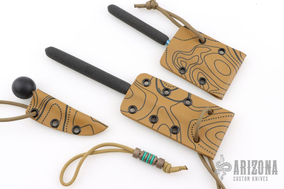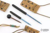 Large Icepick 4" foam grip, 6AL-4V titanium .25"x4.5" blue ano, wood lanyard bead, Kydex sheath. (8.75" Overall)