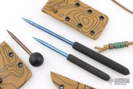 Ball Spike 1" Delrin Ball, 6AL-4V Titanium .25"x2.75" heat ano, Kydex sheath. (4" Overall)