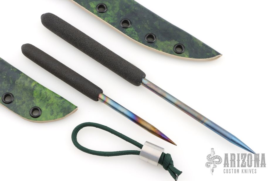 Large Icepick 4" foam grip, 6AL-4V titanium .25"x4.375" heat ano, Kydex sheath. (8.75" Overall)