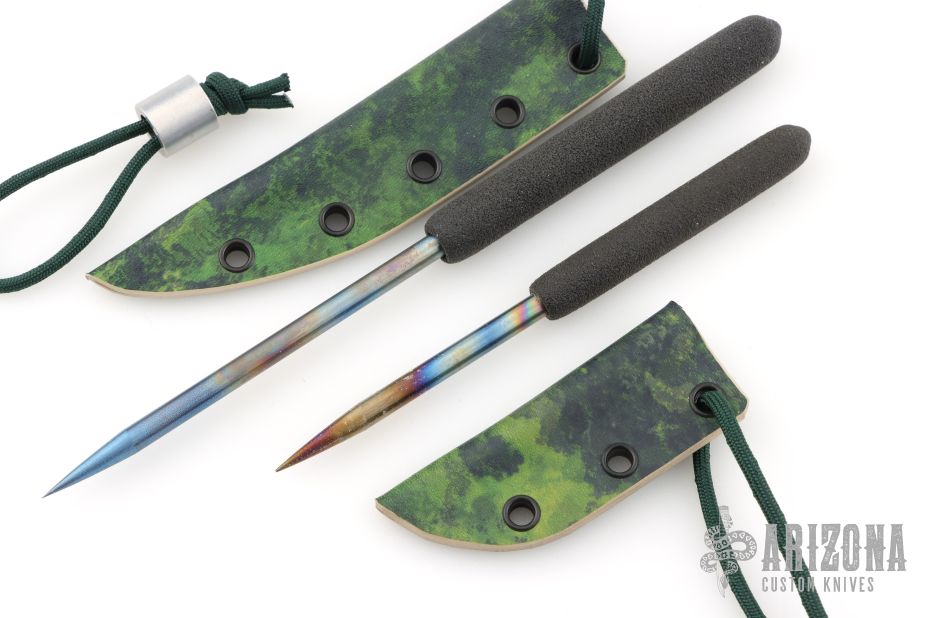 Small Icepick 3" foam handle 6AL-4V Titanium .25"x3", heat ano, kydex sheath. (6.25" Overall)
