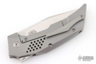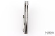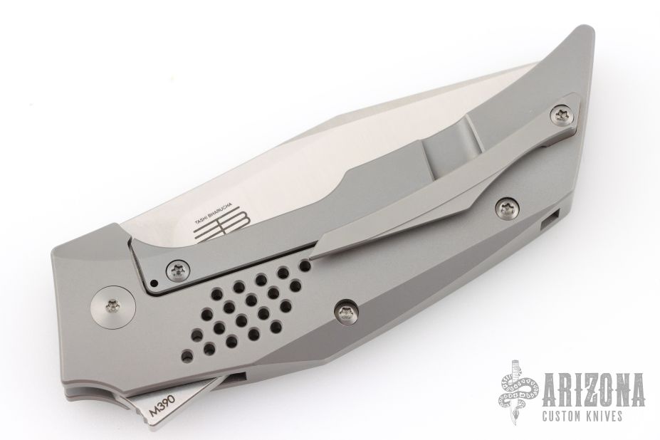 Experience Reate quality in a scaled down EDC friendly size with the Tashi Bharucha designed T3500. This T3500 model showcases a bead blasted titanium handle with fat carbon inlays and a satin finished recurve blade. Ceramic bearings facilitate smooth and fast deployment of the highly effective blade. This sturdy T3500 folding knife offers distinctive Bharucha style and a pocket friendly design. Features: Low-profile blade flipper offers comfortable pocket carry and rapid one-hand deployment. Bohler M390 steel offers high corrosion and wear resistance. Titanium pocket clip for convenient tip-up carry. Titanium hardware.