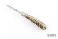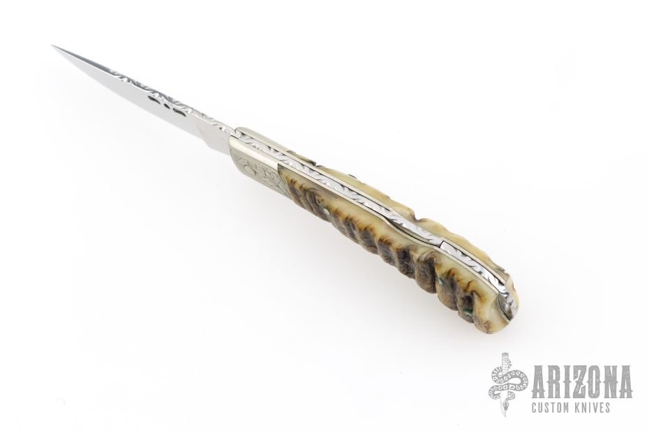 Mike "Whiskers" Allen and his wife Denise have been in the custom knife business since 1984. Mike has been a member of the Knife Maker's Guild since 1989. He has built a great reputation specializing in custom folders, scale release autos, and bolster release autos. "I take pride in sole authorship of my knives. From the basic design, grinding and assembly, to the embellishments of file work, and engraving."