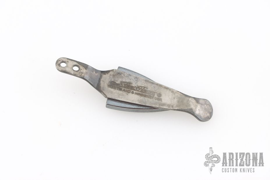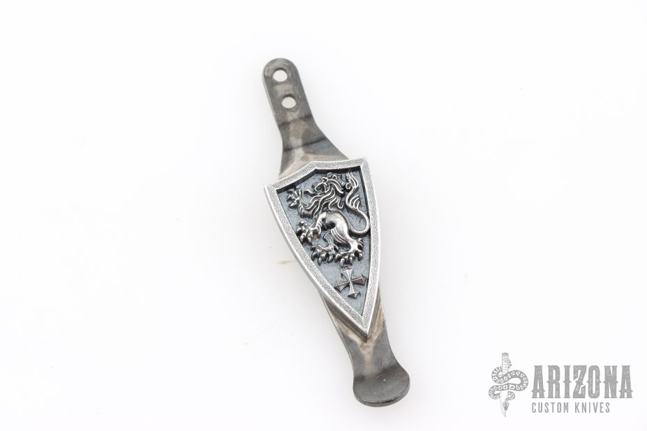 2-Hole Clip Titanium clip by Steel Flame with Rampant Lion Shield. Excellent condition.