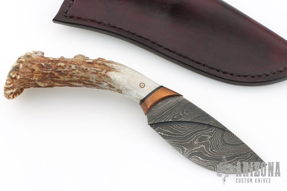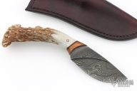 My choice of materials for my knives are natural and exotic handle materials such as pearl, bone, ivory or fine burlwood combined with a Damascus blade. All my knives are made by stock-removal, free hand ground and hand finished. I do not work off of set patterns, but from a simple drawing. This takes a little more time but it also allows me to be more creative and have full control to make slight changes to each custom knife, obviously as result no two knives are ever identical. My first knife was it was once described by another knife maker as organic in design. My basic designs still reflect that organic flow, graceful curves and a minimum of straight lines. I maintain sole authorship on all my knives with the exception of the Damascus I use and heat-treating of stainless steels. Like many makers I began with fixed blades, as I gained skills I moved into folders, then autos. Lately I have taken to building my folders with all the screws hidden."