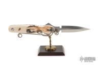 "I have been a Custom Knife Maker since 1980. I joined the Knifemaker's Guild in 1981 and was inducted as a voting member in 1983. I make several styles of knives from Hunters, Lock backs, Liner Locks, and one of a kind Art pieces. I am known for my file work and the Stands that I create to display each Art Piece. My Colt 45 "Pistol Grip" Lock back is also one of my trademarks. I love doing file work on each knife. I think it adds a personal touch of class to the knife."