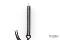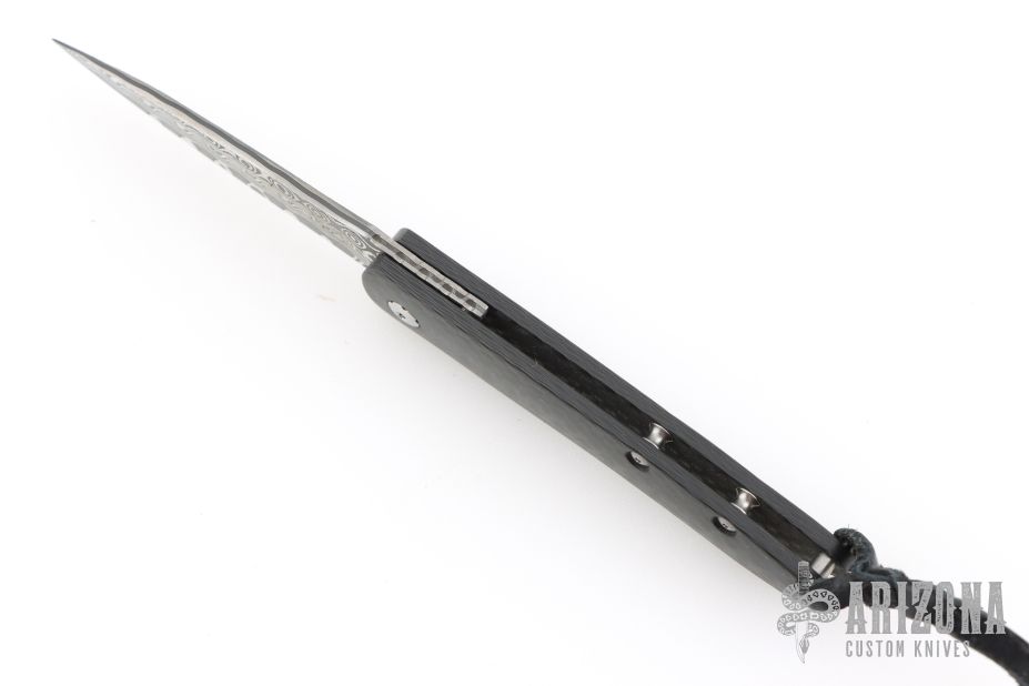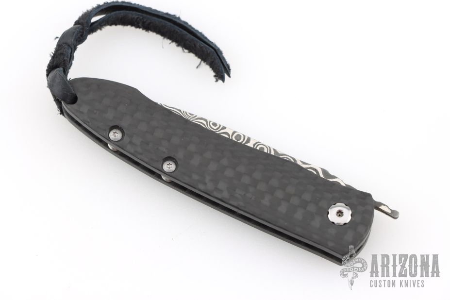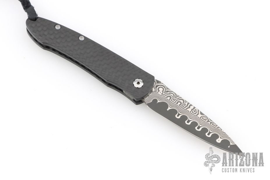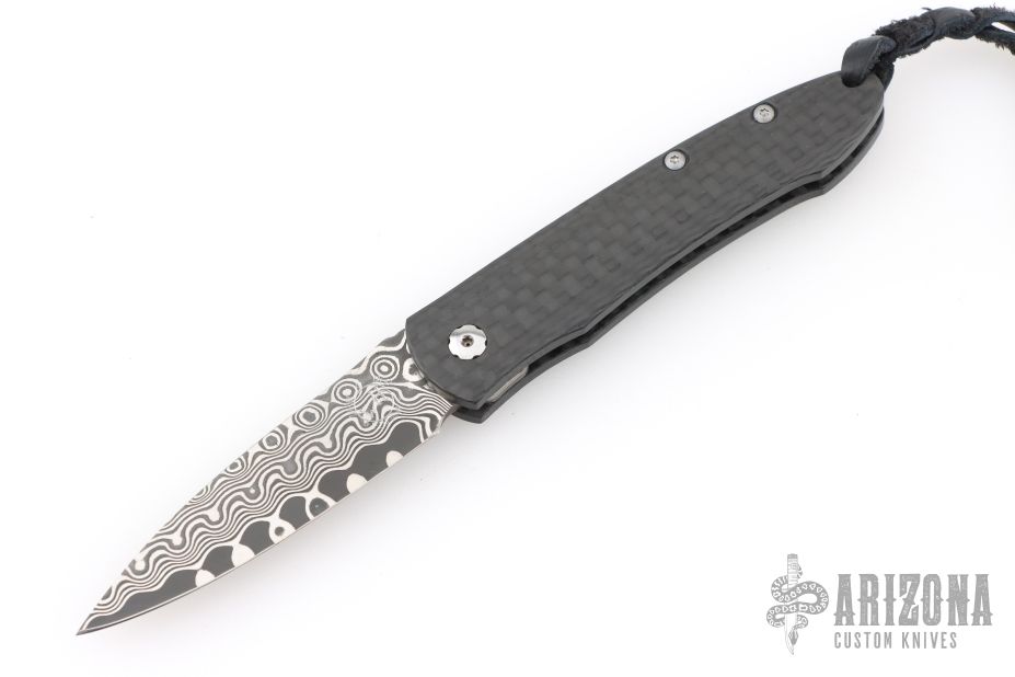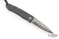 The Legacy collection from William Henry offers a modern vision of the traditional friction folder. The gentleman’s knife, reduced to its essence, with a solid carbon fiber handle and Raindrop Damascus blade. Includes the original box, sheath, and papers, dated May 6, 2006. Excellent Condition.