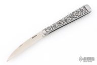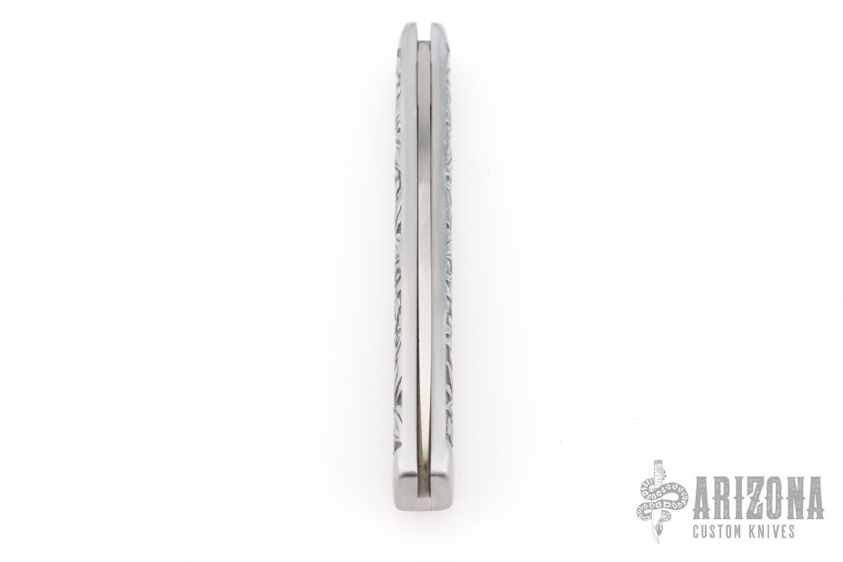 This slipjoint by Bill Simons feature a satin finished blade with nail nick. The handle has stainless steel covers, stainless steel spring. #512 inside the spring. Comes with a zippered case. Excellent condition.