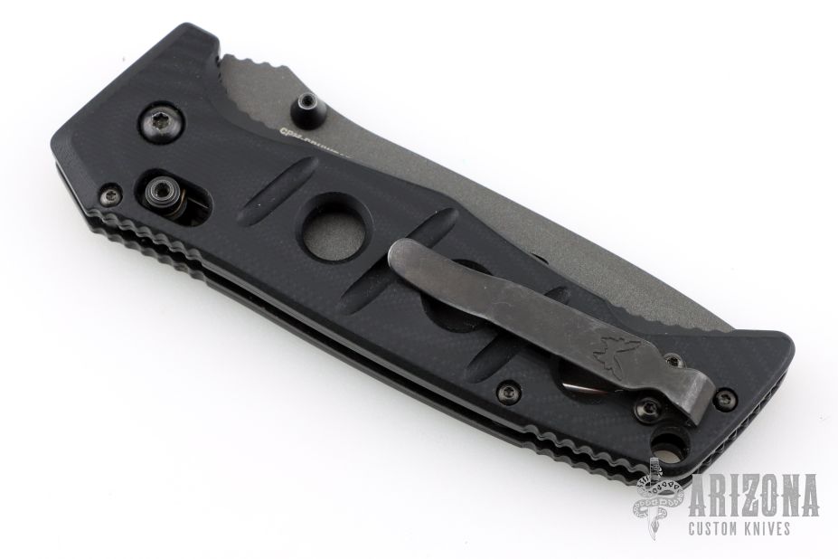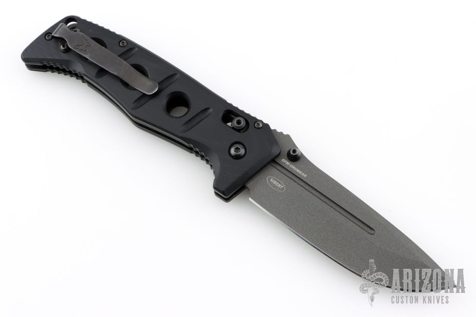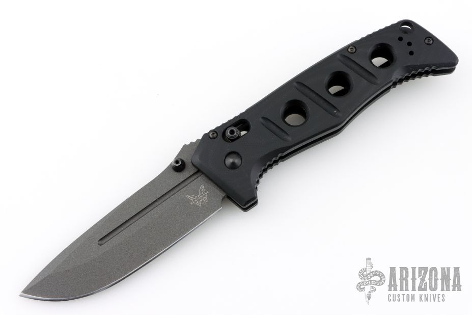 With this model, Benchmade solidified this rugged knife with a black G-10 handle and a new CPM-Cruwear steel that has doubled over results of the original D2 steel with its excellent combat against wearing down and its durable toughness. The gray tungsten, cerakote finish on this drop point blade style gives it the perfect appearance. CPM-Cruwear is a formula of vanadium, tungsten, and molybdenum for the best results out of this new EDC pocket knife. The AXIS lock can be used ambidextrously and is as smooth as butter when it comes to closing this blade. With a lanyard hole and deep carry pocket clip, you can take this epic knife anywhere. Comes with original box, sheath and papers. Has some scratches on the clip. Excellent Condition.