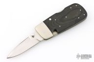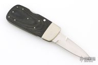 This Lockback by Bill King features a hand rub satin finished double edged blade with a single thumbstud. The handle has nickel silver dovetailed bolsters, black linen micarta scales, nickel silver liners and a stainless steel lockbar. Has a couple light scratches, otherwise excellent condition.