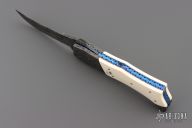 "My first knife was a filet in 1976 made from a sabre saw blade. Progressed to hunting, boot, folders in lockbacks, linerlocks, and finally automatics. Ats-34 is the primary blade steel and some Damascus from various makers. Liners and springs are of titanium and usually anodized. Some file work on blades and most liners. Various handle materials including micartas, circuit-boards, wood, stag, buffalo, ivory, pearl, and oosik." Bill is a charter member of the Florida Knifemakers Association and the local Gator Knife Club. Mentored by Frank Centofante and Mel Pardue in the 1970's.