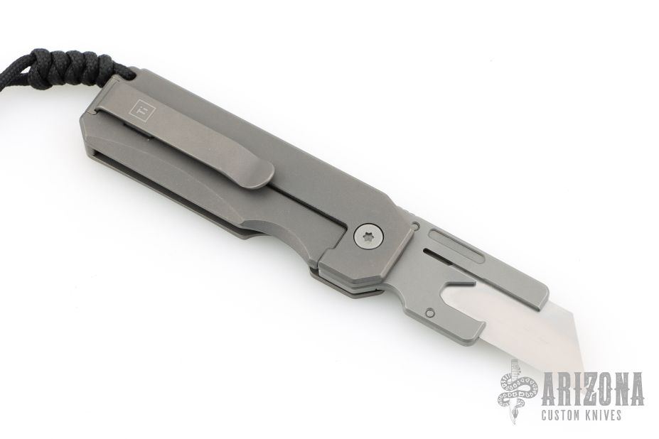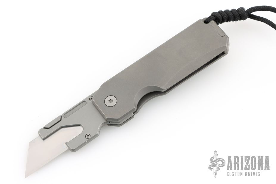 The Ti Utility Knife is inspired by our classic design the Titanium Pocket Tool. It features a quick change blade mechanism that locks a standard utility blade in place safely. It carries a bottle opener feature from the Titanium Pocket Tool. It's frame lock handle is made out of grade 5 titanium, it's durable, strong, and lightweight. Perfect for everyday carry.