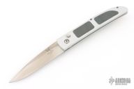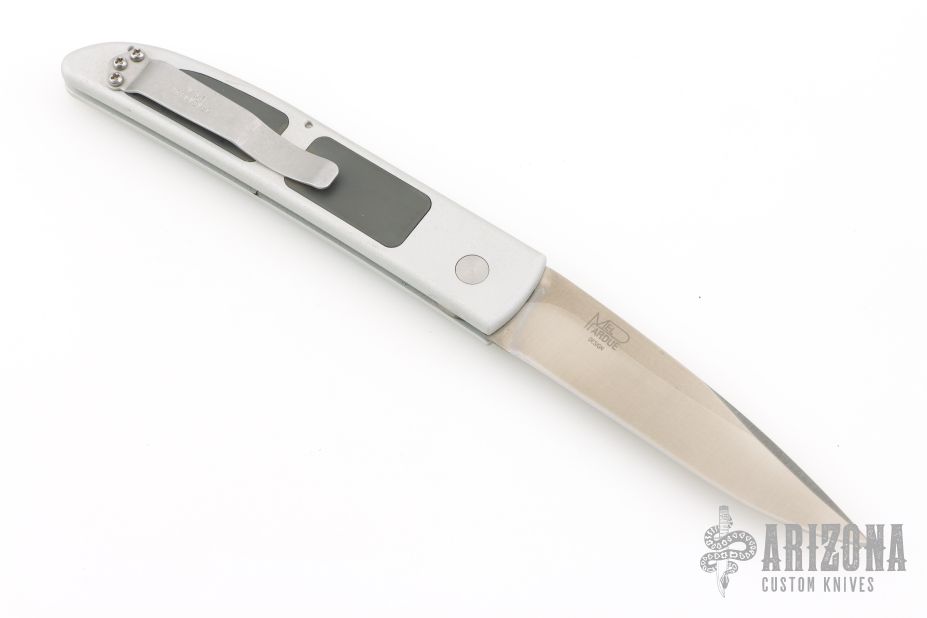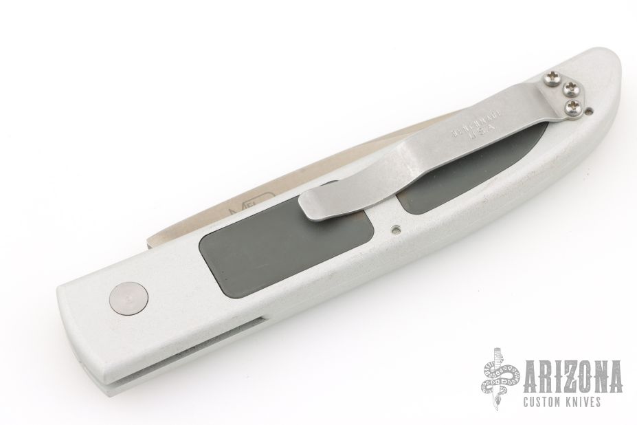 The 3000-CLR automatic from Benchmade is a discontinued model designed by Mel Pardue. Side opening, coil spring. Satin finish blade. Silver aluminum handle with rubber inserts and tip up stainless steel clip. Has a couple light scratches, otherwise excellent condition.