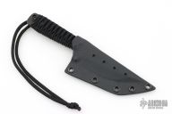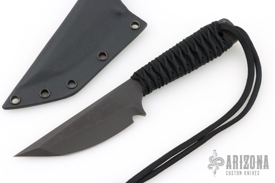 The WP Dub Tanto by Mick Strider features a black blade with false top edge, .219" blade stock and 1.221" blade depth, full tang construction with black cord wrapped handle. Comes with kydex sheath. Excellent condition.