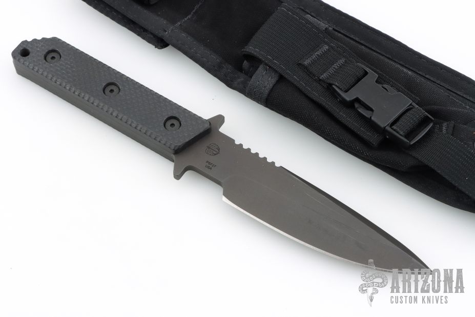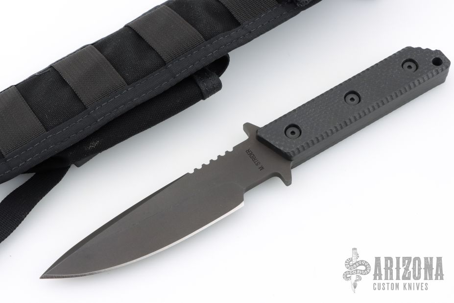 In 1988, he began making specialized knives for use by the military. This turned out to be fortunate turn of events, both for Mick and for the knife using world at large. Mick’s approach was to not get burdened by the weight of past designs. He started with a tabula rasa, a clean slate, informed only by his own experiences and knowledge of what a soldier needed in a knife. The knives he made didn’t look like the hunter-inspired knives seen in most PXs; instead they were almost brutish in their functionality: beefy, solid, and with unbreakable ¼” stock full tangs. These knives were the first indication of his innovative approach: in addition to their utilitarian design, the knives carried a subdued finish and subdued sheaths. No one carrying a Strider knife was going to be spotted because of sunlight glinting off of polished steel or a glossy leather sheath. Soldiers, policemen, and other men going into harm’s way couldn’t buy them fast enough. Mick sampled some good ideas, but made them great. For instance, he was not the first to wrap a knife handle with paracord, but he was the first to do it in a way that was tough enough for sustained infantry use.