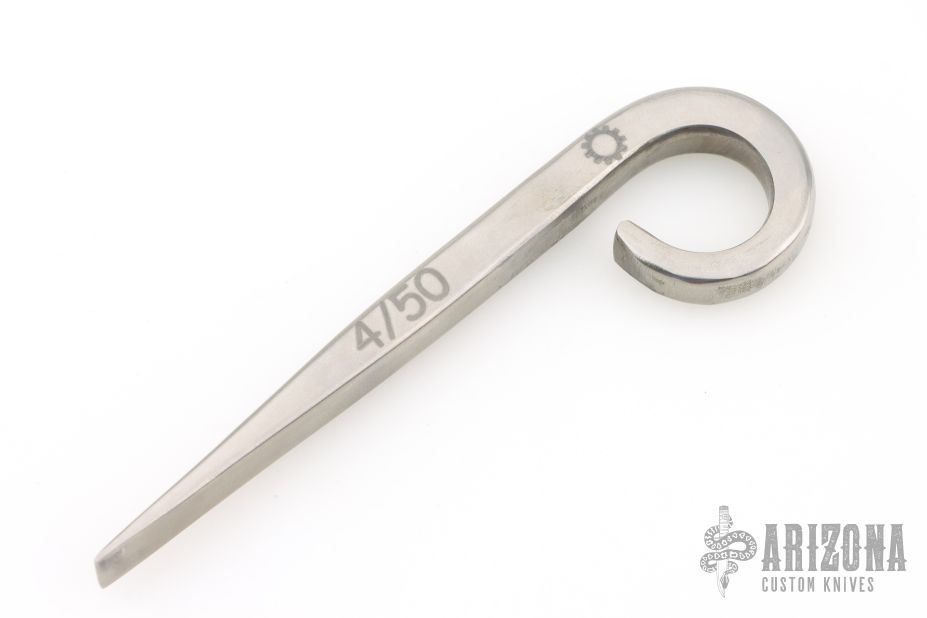 This spike by Seth Ofgang is made from satin finished titanium. It has a Flat head screw driver, and .892" finger hole. "Hangs on belt loop, and can be used in icepick grip for self defense." New from maker. #4/50.