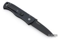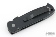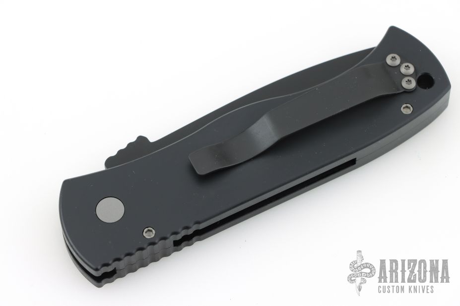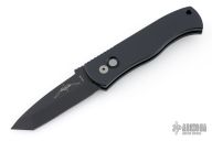 This Emerson/Pro-Tech CQC7 automatic has a chisel ground black DLC finished blade with a plain edge and a solid black aluminum handle. Coil spring. Excellent condition. Comes with original box and papers.
