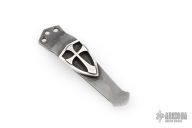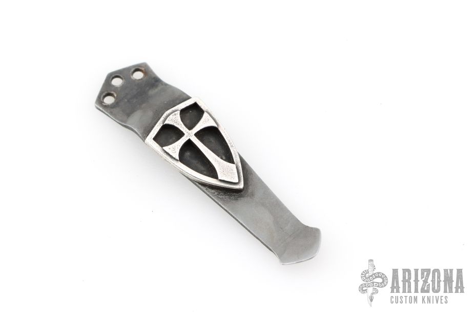 This 3-hole titanium clip features a sterling silver Crusader Cross. Has a few light scuffs/scratches otherwise the knife is in Excellent condition.