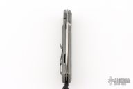The idea behind the Sebenza has never wavered: to craft the best pocket knife in the world. Premium materials, paired with pristine finishes, and a bank-vault lock-up— all within an incredibly light, precision-made tool. That commitment continues with the new Sebenza 31 with a Ceramic Ball Interface. Like the very first Sebenza, it delivers the same warm “click” and heirloom quality produced from aerospace tolerances. The Sebenza 31 brings finer details to an already fine knife — and another steady, reliable step forward. This one has a tumble finished blade with single thumbstuds, and bead blasted titanium frame with black canvas micarta inlays. Includes the original box, cloth, lube, tool, papers, and COA dated August 18, 2020. Excellent condition.