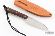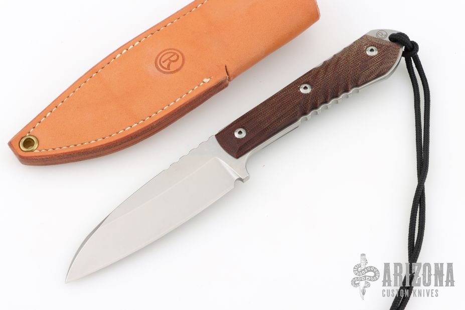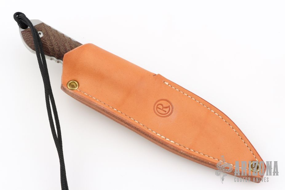 "In the Chris Reeve Knives tradition of simple, elegant and functional, the Nyala is a modern version of a classic skinner. Featuring the utility of a drop point and enough belly for skinning, this all-purpose knife will prove useful in a multitude of applications. The integral handle and blade of CPM S35VN is sturdy and practical - spiral and lineal grooves in the micarta handle provide positive grip - good knife control is provided by serrations on the spine. The high quality sheath is made of leather treated to be water-resistant." Includes original brown leather sheath, box, and papers dated January 24, 2019. Excellent Condition.