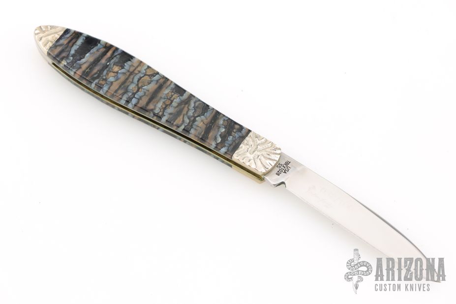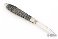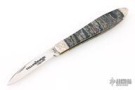This Tony Bose designed Case is a Yellowhorse production. It features a polished drop point blade with nail nick and false top edge. The handle has textured nickel silver bolsters, mammoth ivory covers, and brass liners. Comes with original box. Excellent condition.