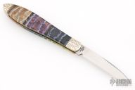 This Tony Bose designed Case is a Yellowhorse production. It features a polished drop point blade with nail nick and false top edge. The handle has textured nickel silver bolsters, mammoth ivory covers, and brass liners. Comes with original box. Excellent condition.