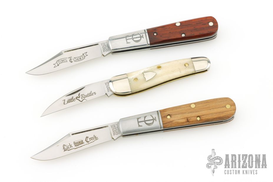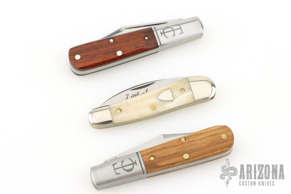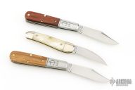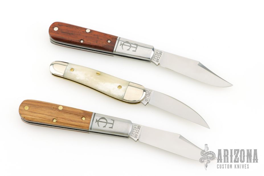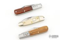 This 141122 Tom's Choice slipjoint by Great Eastern Cutlery features a satin finished blade with a nail nick. The handle has fluted stainless steel bolsters, brass liners, cocobolo wood covers, stainless steel spring. Has half stop. Comes with original tube and papers. Excellent condition.