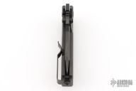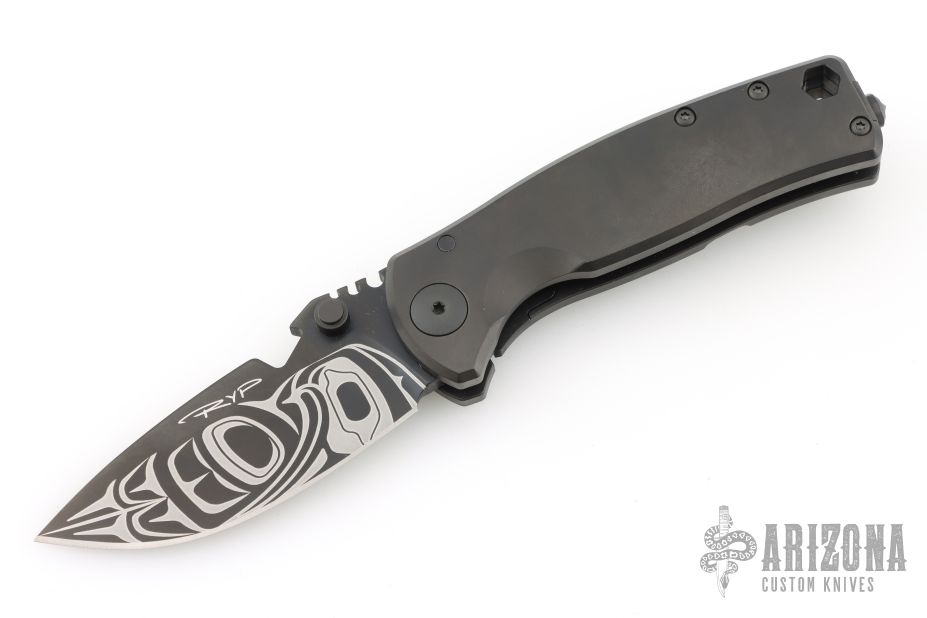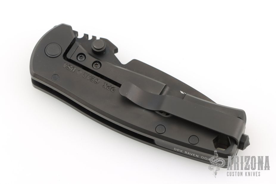 This Hest/F by DPx Gear features a black blade with dual thumbstuds and notched thumbrest. The handle has a black titanium frame with matching tip up clip. Comes with original box. Has a couple light scuffs, otherwise Excellent condition.