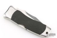 This Vintage Large Tomcat lock back by SOG features a satin finish blade with false top edge and nail nick. The handle has satin finished stainless steel bolsters, liners and backspacer, checkered rubber scales. Strong lock up. Has scratches, has been sharpened, otherwise good condition.
