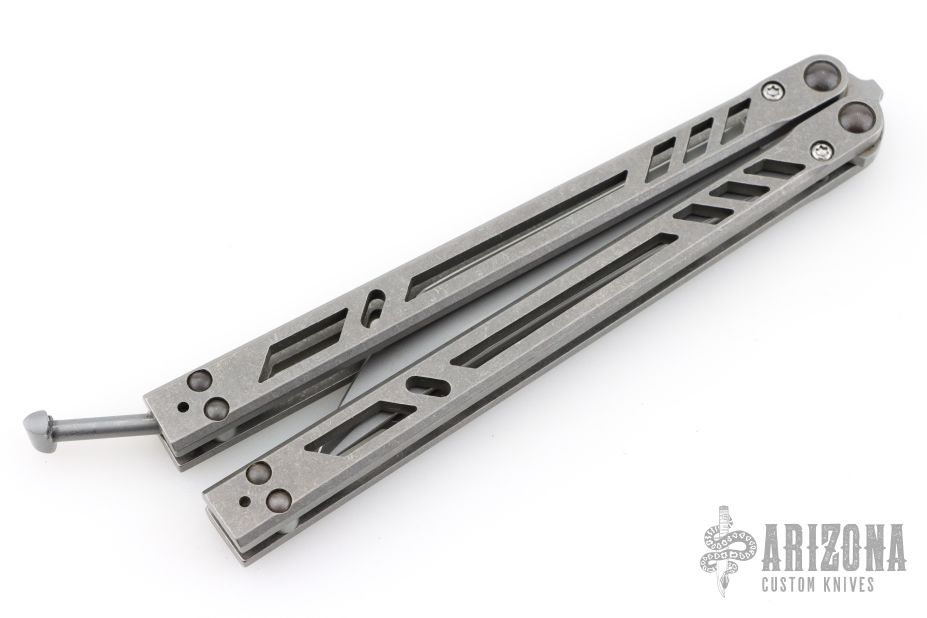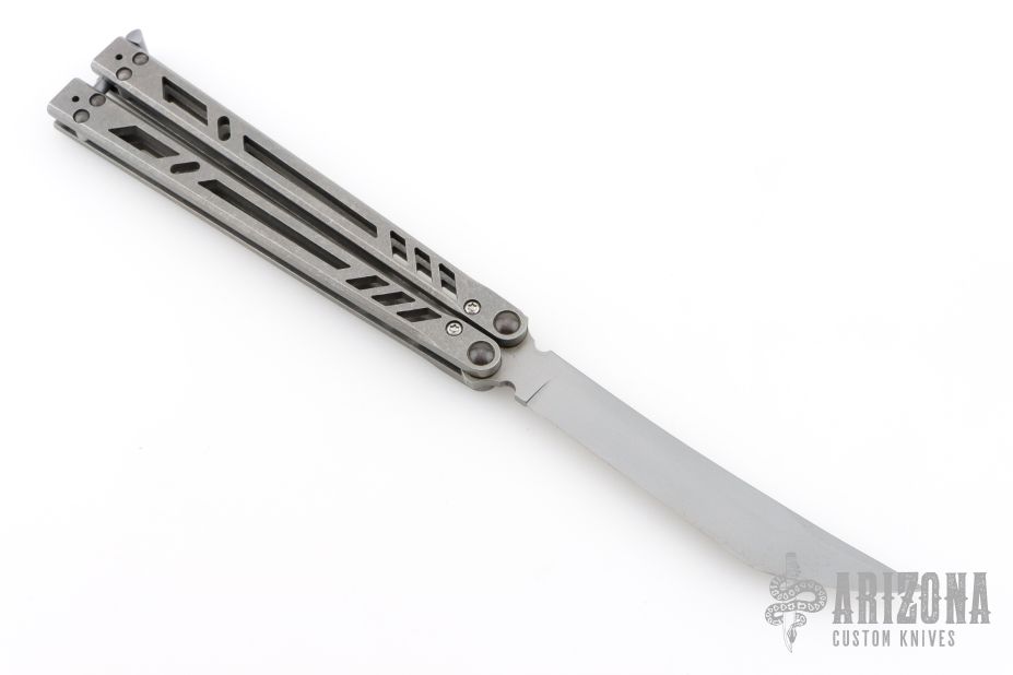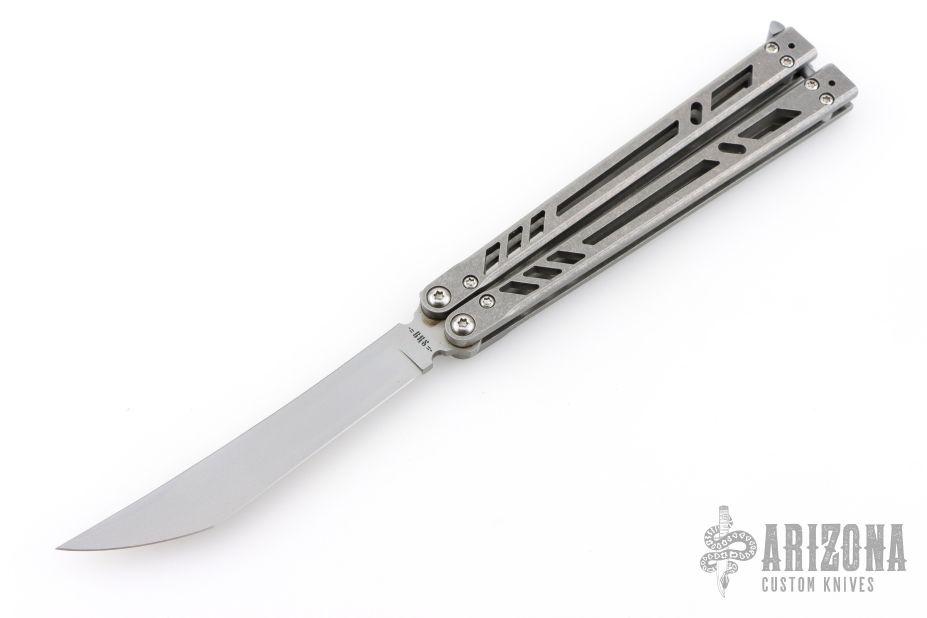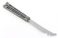 This Ti Bones Balisong from BRS features a matte finished blade. The handle is comprised of bead blasted titanium handles with satin titanium backspacers. Comes with original box and papers. Excellent condition.