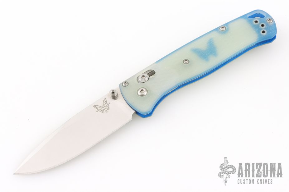 The Benchmade Bugout offers a lightweight, ergonomic build designed with everyday carry and general outdoor use in mind. Its high-performance CPM-S30V blade sports a partial swedge to provide a finer point, and comes fitted with blue anodized dual thumb studs for easy one-handed operation. The comfortable Grivory handle has been textured on either side for added grip without being abrasive. Comes complete with an oversized lanyard hole and reversible deep-carry clip for convenient EDC.