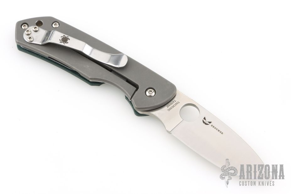 The Spyderco Brouwer offers a simple, practical design for everyday use. It was designed by custom knife maker Jerry Brouwer and successfully captures his refined and functional aesthetic. This knife sports a satin finished S30V blade and a titanium frame lock handle with a forest green G-10 front scale. A reversible stainless steel tip-up pocket clip finishes off the distinctive Brouwer design.