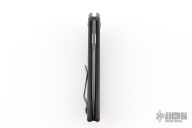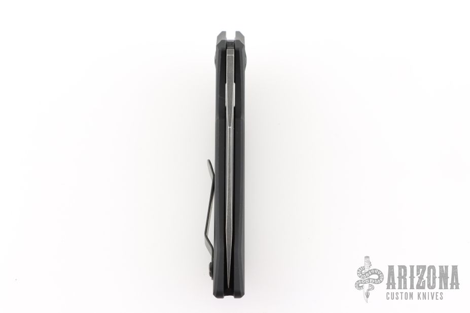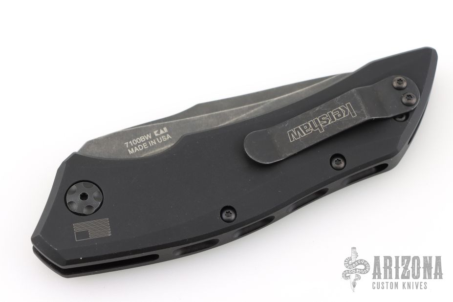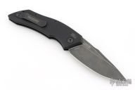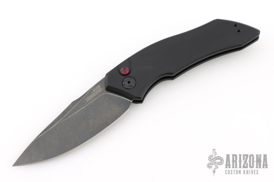 This Launch Auto #1 by Kershaw features a blackwash finished blade with swedge. The handle is black aluminum with push button and tip up reversible black stainless steel clip, lanyard hole at the butt. Comes with original box and papers. Has a couple light scuffs on the clip, otherwise excellent condition.