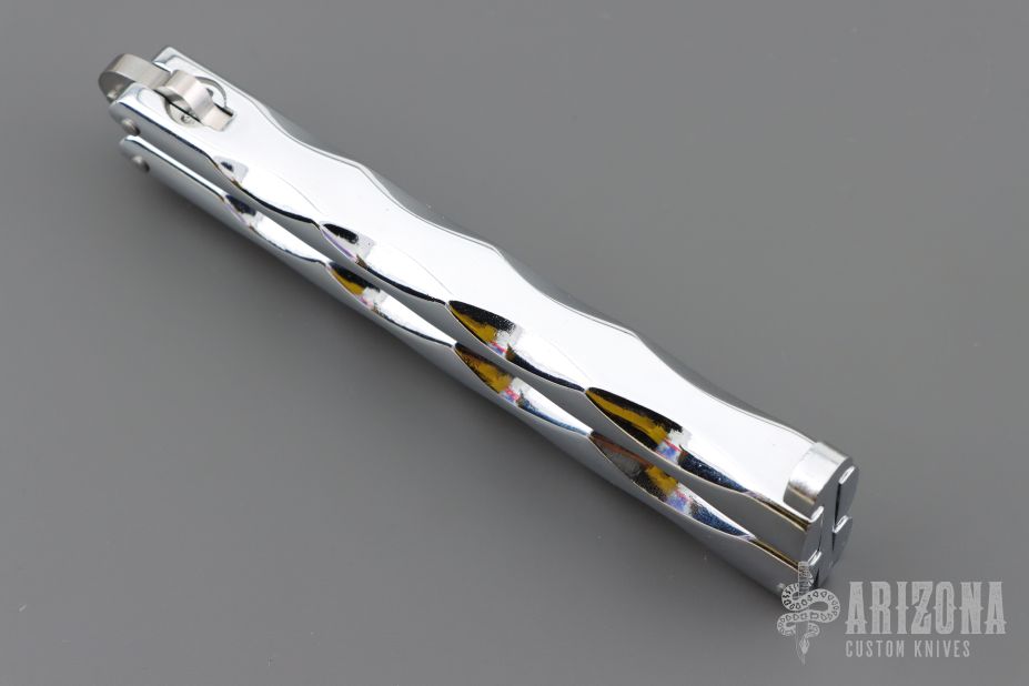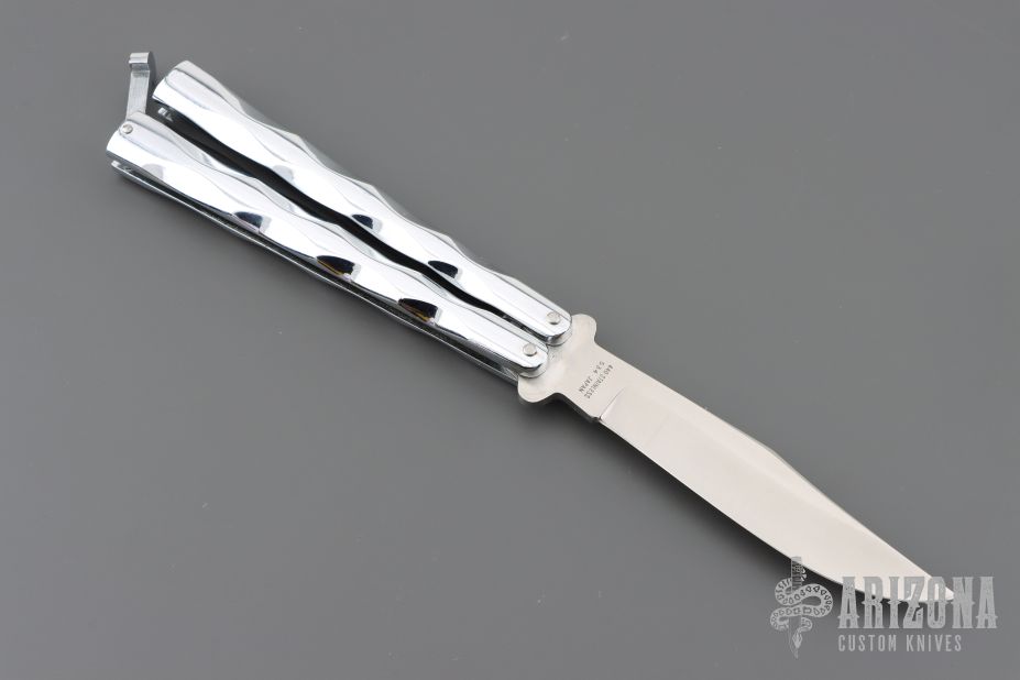 This CHO Balisong by Valor has a satin finished blade. Diecast metal handles. Comes in a jewelry box. Has a few light scratches, otherwise excellent condition.
