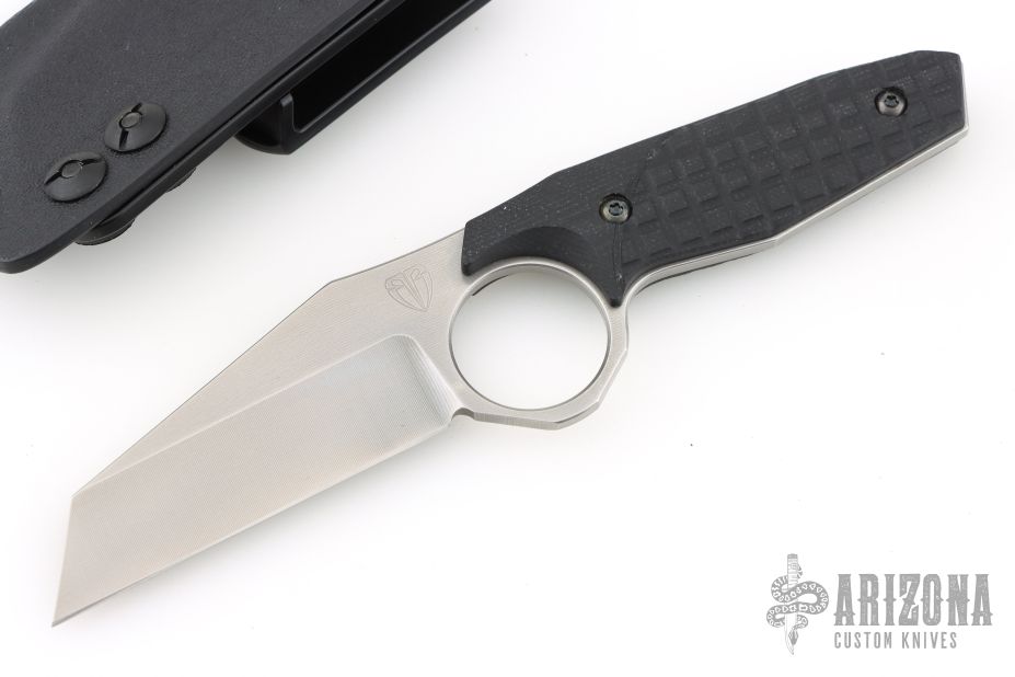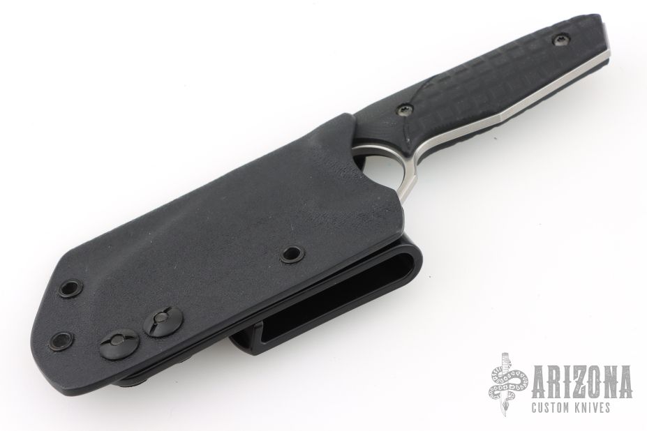 It has been said many times, but is worth repeating: folders are great, but nothing beats a fixed blade for speed of deployment and simplicity. Biegler Bladeworks' Babymetal is a smaller lightweight easy to grab tool. The hollow ground Wharncliffe blade profile is well suited for both your everyday utilitarian tasks and defensive purposes. The upper (unsharpened) swedge flows into an oversized thumb groove, that gives you better control when doing finer tasks. The ringed handle design paired with the contoured and textured G10 handle scales that feature Monkey Edge FRAG Pattern provide a solid and secure grip without being abrasive. Comes in a molded kydex sheath with IWB clip, and can be configured with your preferred mounting solution.