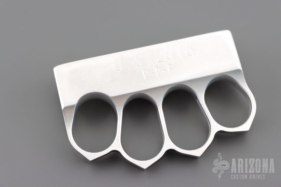 This Aluminum Knuckle by Fred Perrin is one of a kind. It is milled, not cast. .791" thick, 4.125" long and 2.625" tall. New from maker. "U.S. 2018 P-P-F" on the handle.