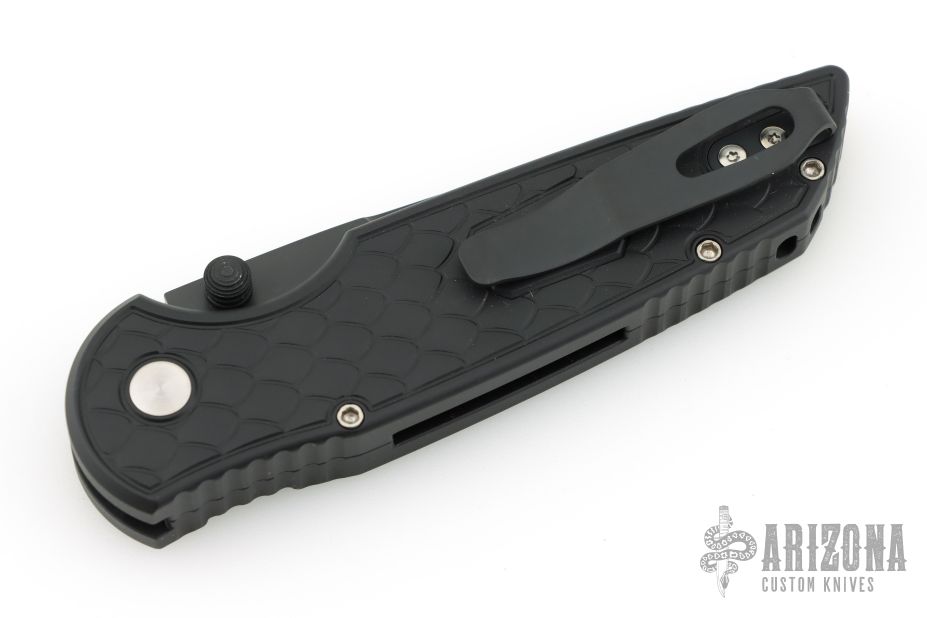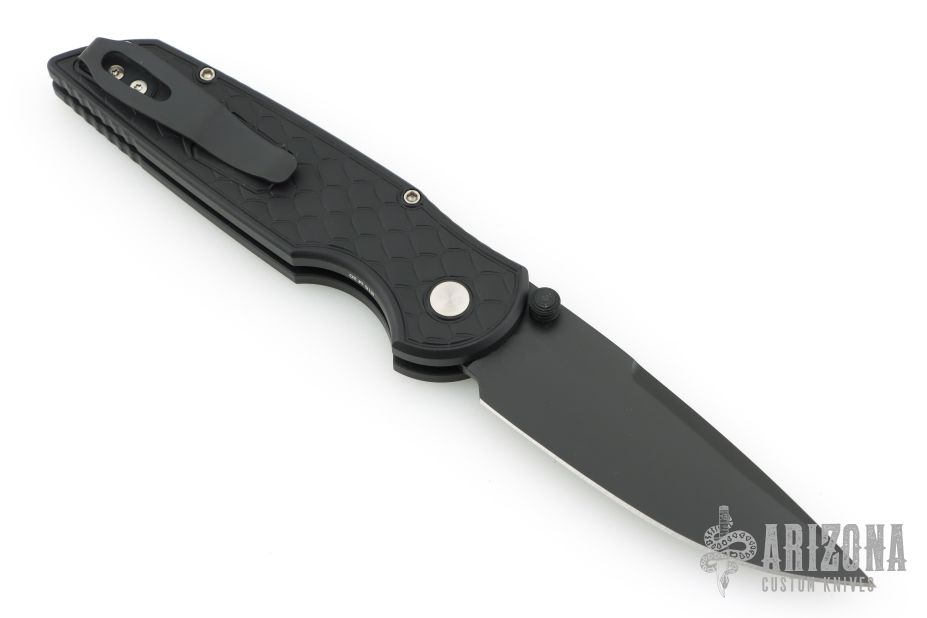 The TR-3 Integrity Folder is a well made knife with great fit and finish, just what you expect from Pro-Tech. This Integrity folding knife features a S35-VN stainless steel blade (plain) with a black DLC blade. The Relic Textured black aluminum handle with "Reptile" texture. Gold lip pearl button. Includes a tip-up pocket clip for carry. Comes with original box and papers. #15 of 20