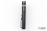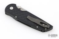 This Integrity Folder is a well made knife with great fit and finish, just what you expect from Pro-Tech. This Integrity folding knife features a S35-VN stainless steel blade with stonewashed finish, a very nice touch. The handle has a "Reptile" textured black aluminum handle with gold lip pearl button and tip up black stainless steel clip. Comes with original box and papers. Excellent condition.