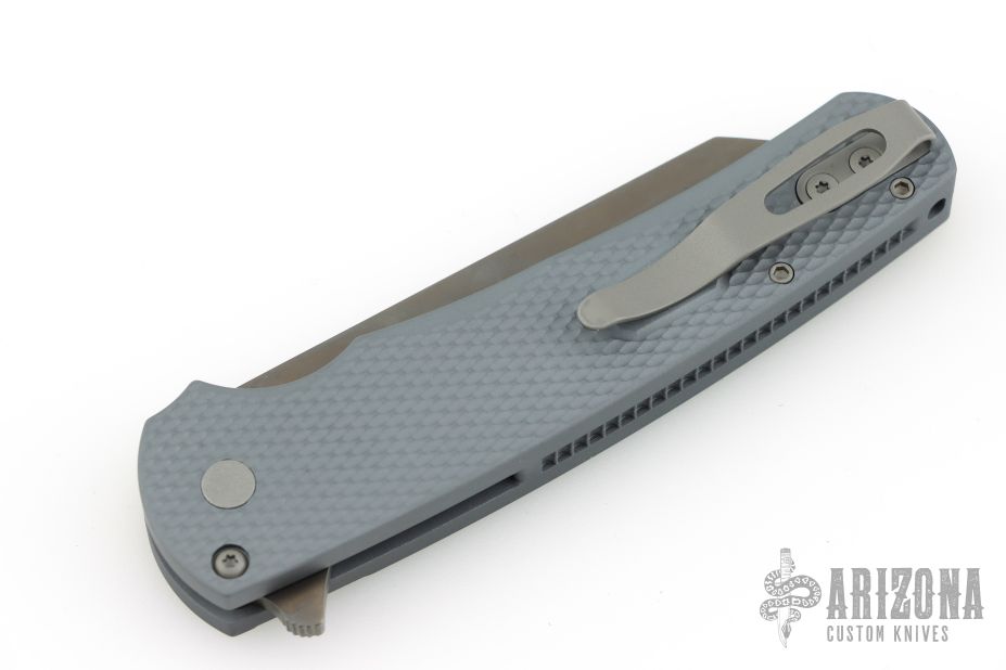 Smokey Mountain Knife Works Exclusive. Grey textured handle, smokey gray DLC coated reverse tanto blade. Comes with original box and papers.  Excellent condition.