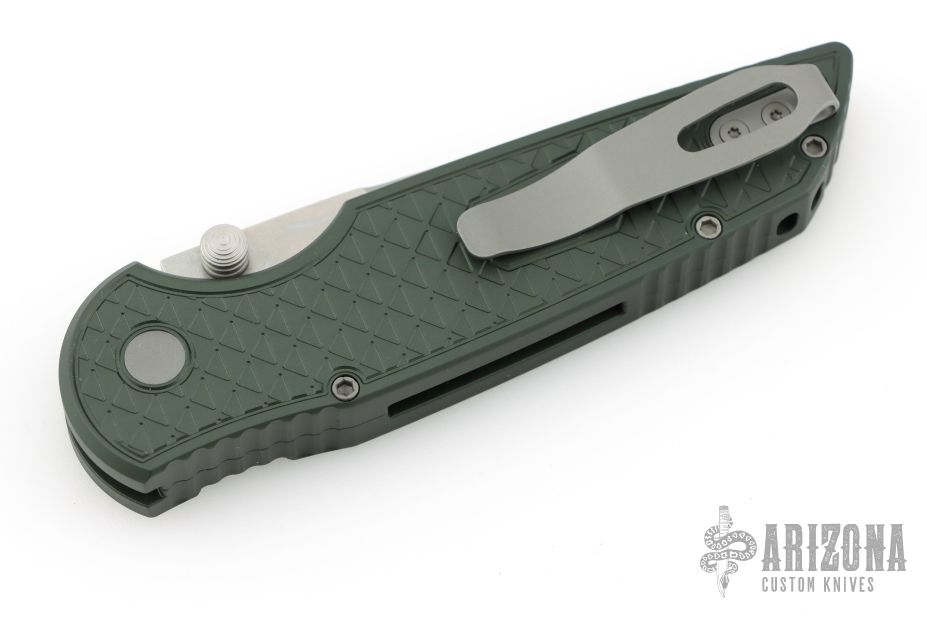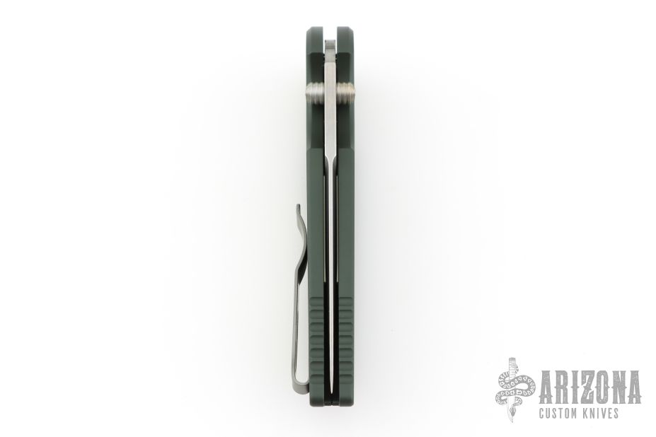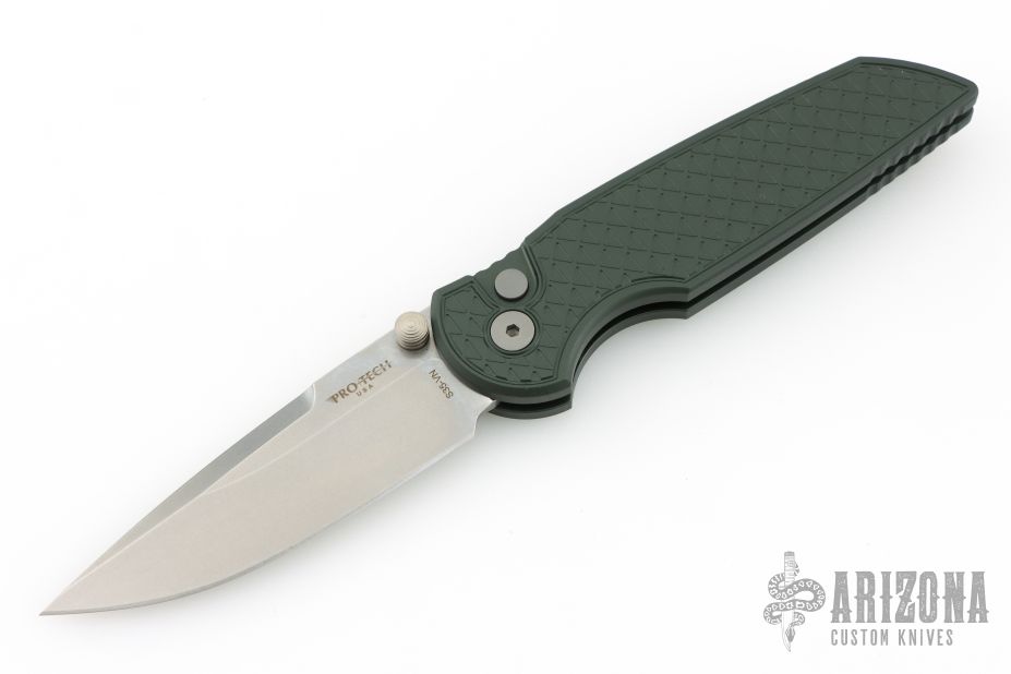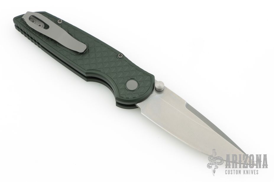 The TR-3 Integrity Folder is a well made knife with great fit and finish, just what you expect from Pro-Tech. This Integrity folding knife features a S35-VN stainless steel blade (plain) with stonewashed blade. The handle has a Relic textured green aluminum handle with bead blasted hardware. Includes a tip-up pocket clip for carry. Comes with original box, pouch and papers. Excellent condition.