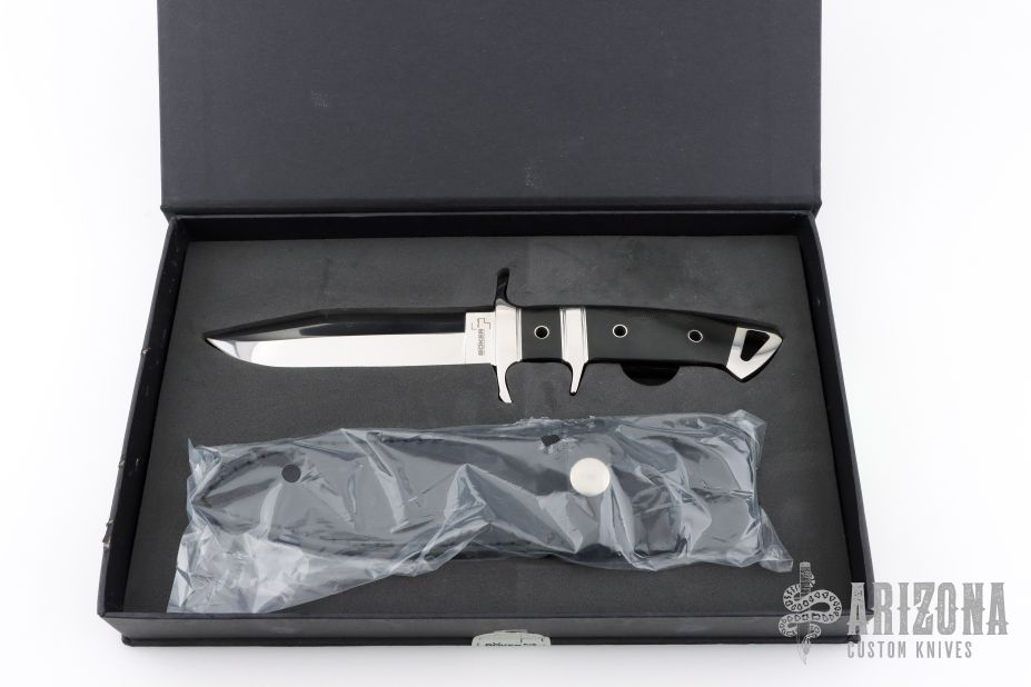 Comes with original box, leather sheath, and papers. Excellent condition.