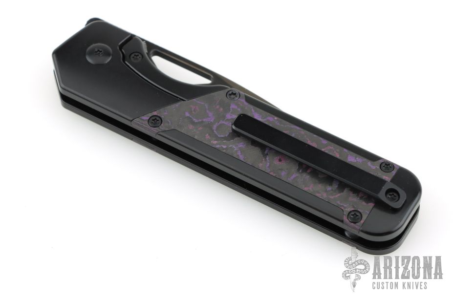 • Handle: Elegant black titanium handle with Purple Haze Fatcarbon inlays.
